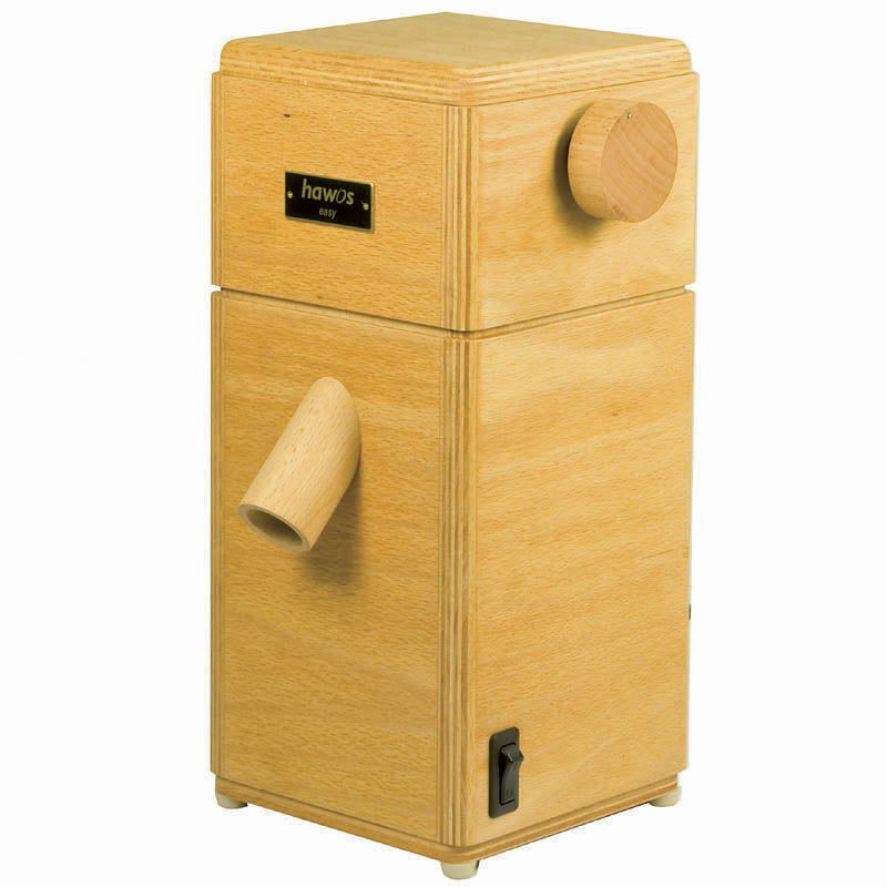 Die einfache, robuste Haushaltsmühle hawos easy ist ideal für den "kleinen" Bedarf. Die Mahlfeinheit kann durch Drehen des Handrades jederzeit verändert werden. Besonders robust und sorgfältig gebaut, mit den für hawos typischen hohen Anforderungen an Komfort und Sicherheit. Durch die kleine Stellfläche passt die hawos Easy auch in die kleinste Küche und sieht mit einem Gehäuse aus Buche-Multiplex mit abgerundeten Ecken auch noch gut aus. Perfekt eingepasst ist der bewegliche Trichtereinsatz, in den der obere feststehende Mahlstein eingelassen ist.